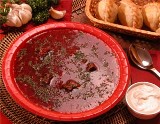 Cette soupe, très consistante, est généralement préparée à base de betteraves et de chou et servie avec une cuillerée de crème sûre, parfois un tout petit pain à l’ail.